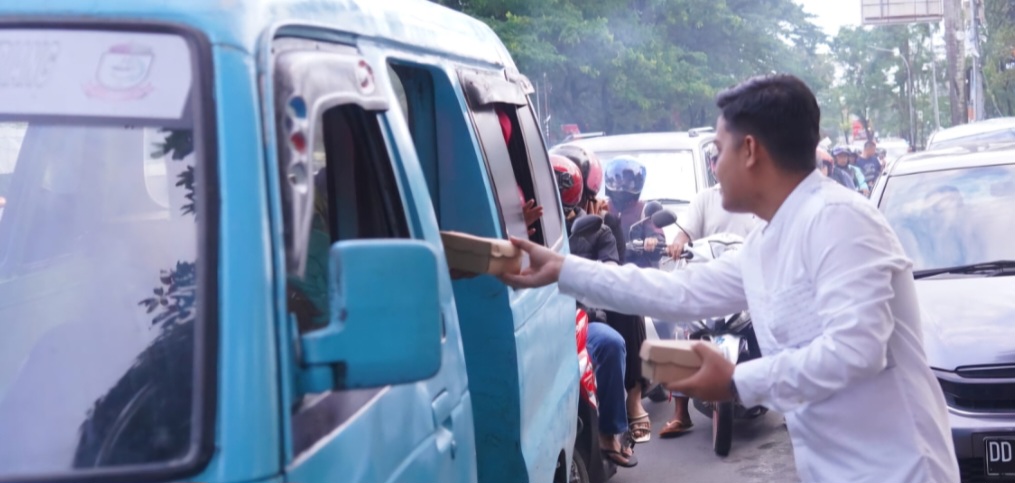 Pembagian takjil dilakukan dengan menyasar para pengguna jalan diwaktu mendekati saat-saat berbuka puasa.
